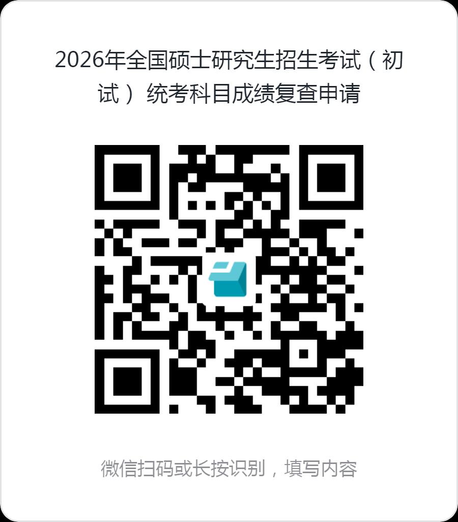 若申请成绩复核考生对统一命题科目成绩复核结果仍有疑义,需向北京教育考试院提出成绩复查申请的,须填写《北京市2026年全国硕士研究生招生考试(初试)统一命题科目成绩复查申请表》(见附件),写明申请复查的具体内容和理由,本人签字后,于3月7日17时前通过小程序(链接、二维码附后)上传提交。后续复查结果将以电话或电子邮件形式反馈。